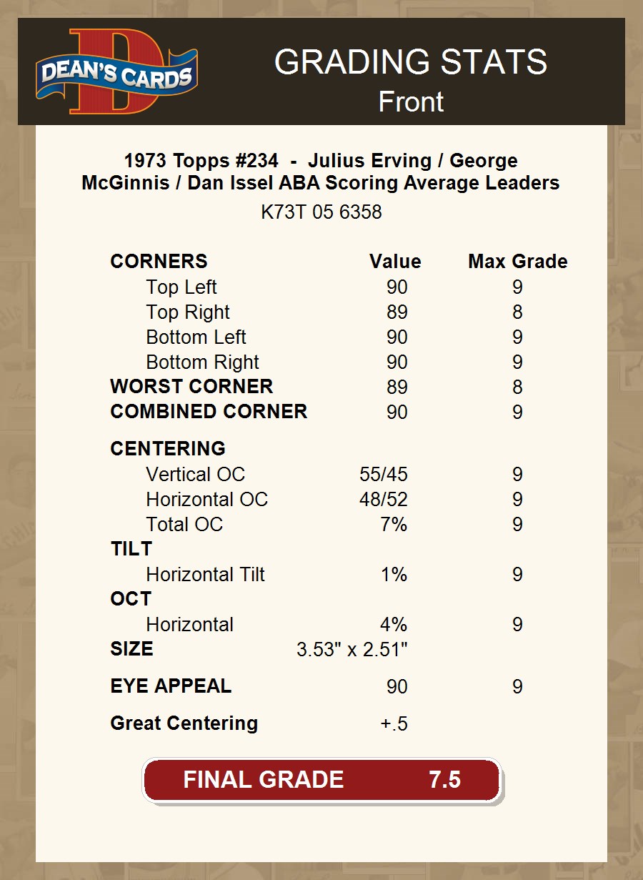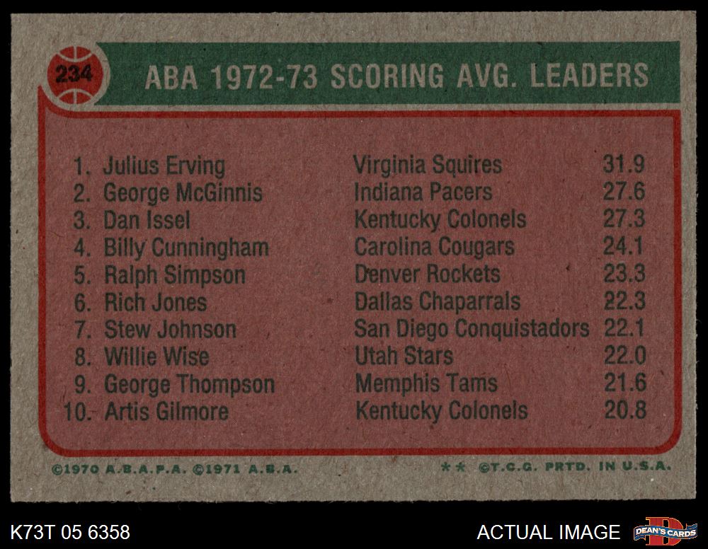 1973 Topps #234 - Julius Erving / George McGinnis / Dan Issel ABA Scoring Average Leaders 7.5 - NM+