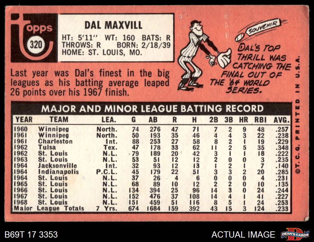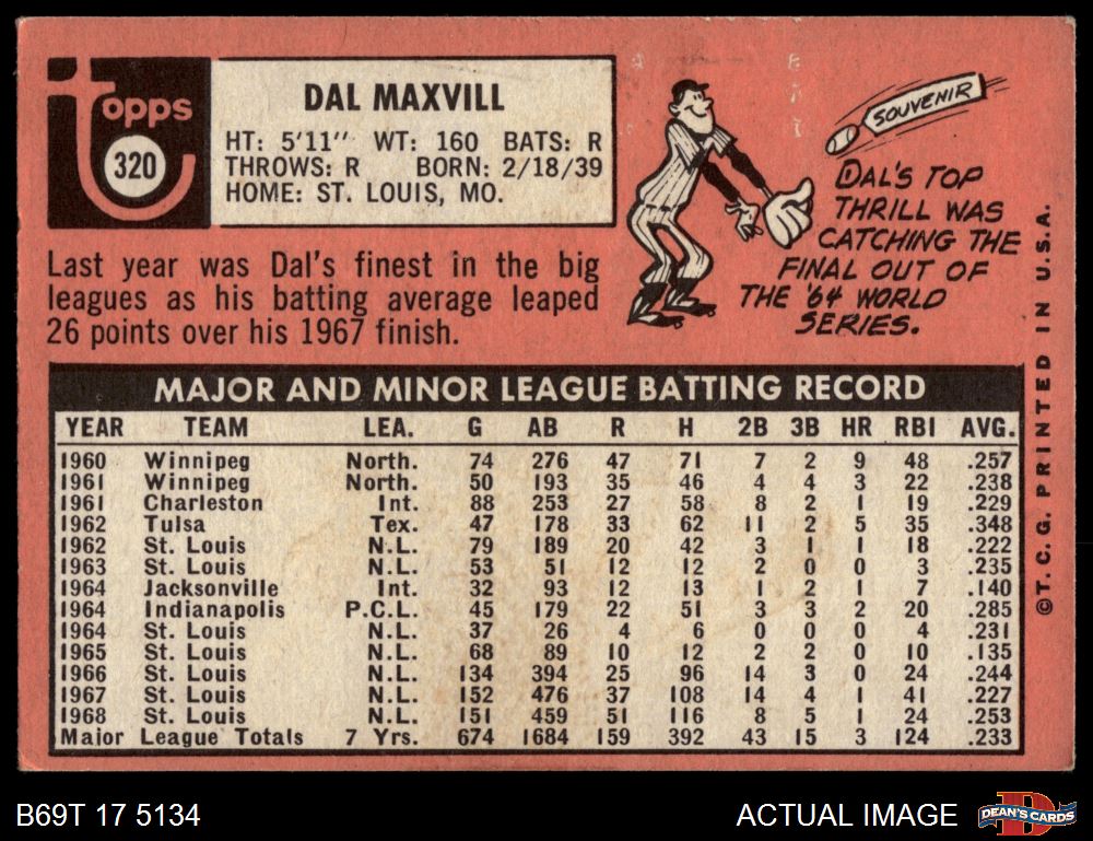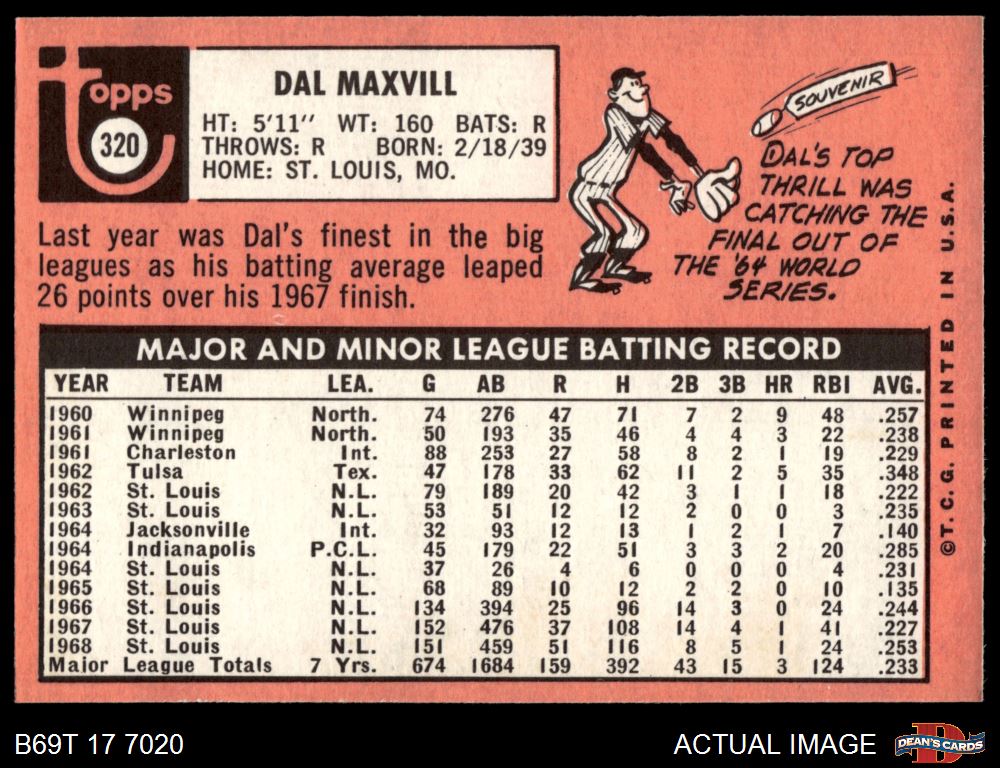 1969 Topps #320 Dal Maxvill