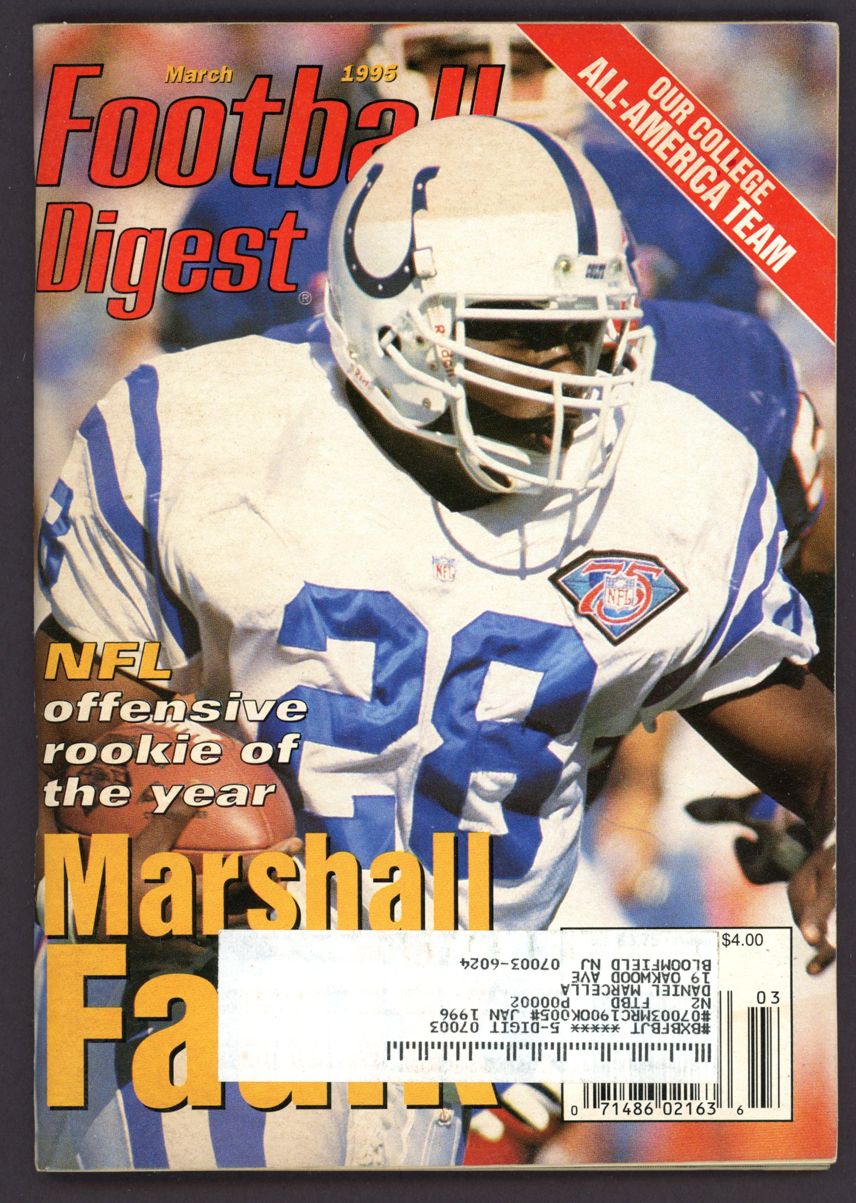 Football Digest March 1995 - Marshall Faulk