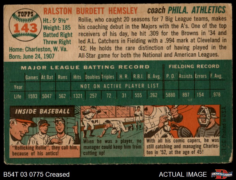 1954 Topps #143 Rollie Hemsley Front Thumbnail