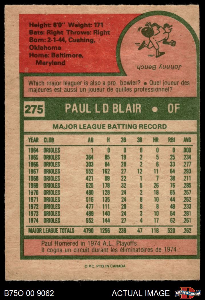 1975 O-Pee-Chee #275 Paul Blair 5 - EX