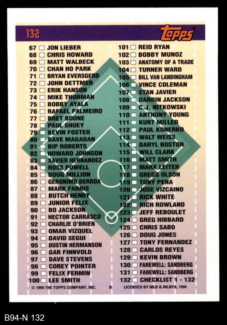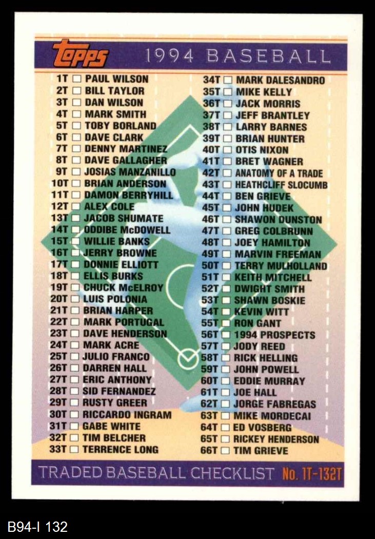 1994 Topps Traded #132 T Checklist 1T - 132T 8 - NM/MT