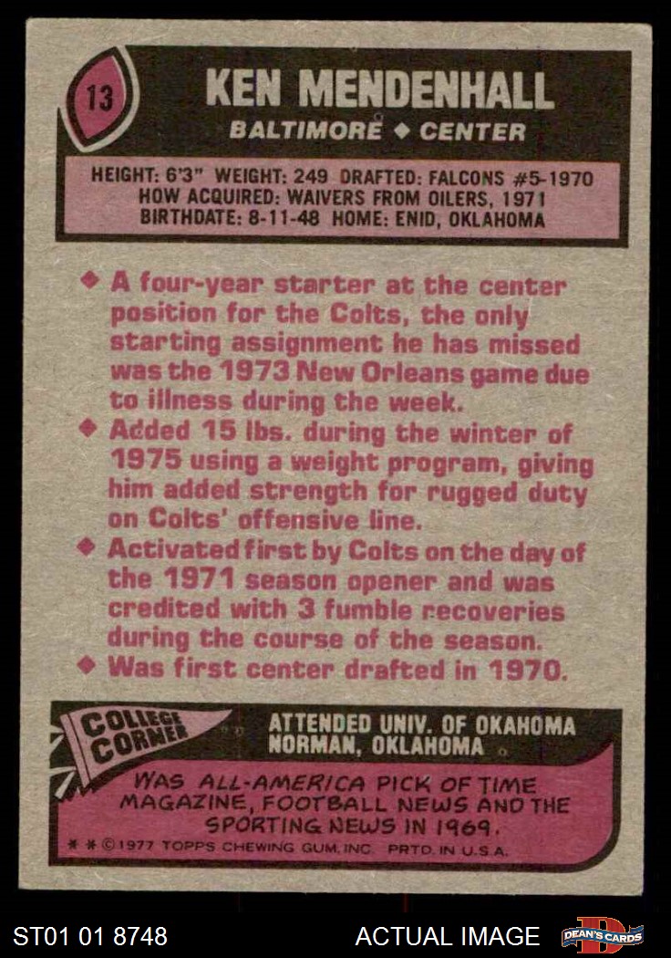 1977 Topps #13 Ken Mendenhall 4 - VG/EX