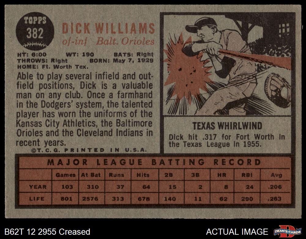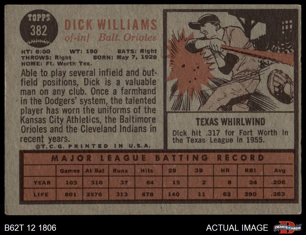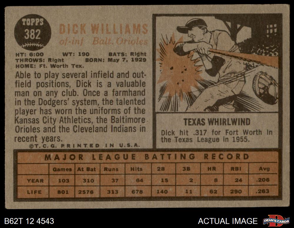 1962 Topps #382 Dick Williams