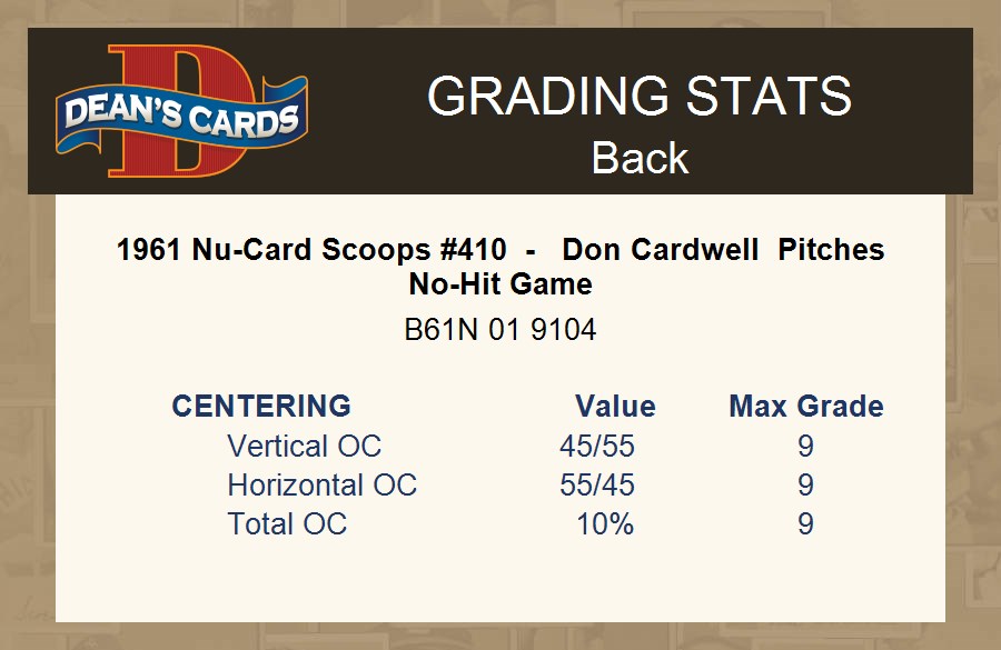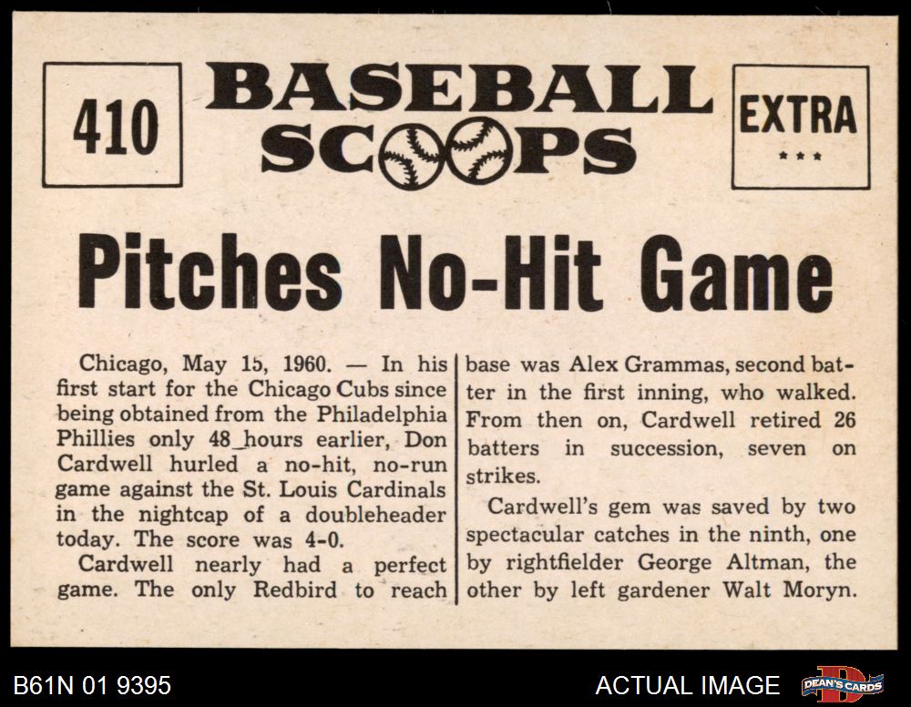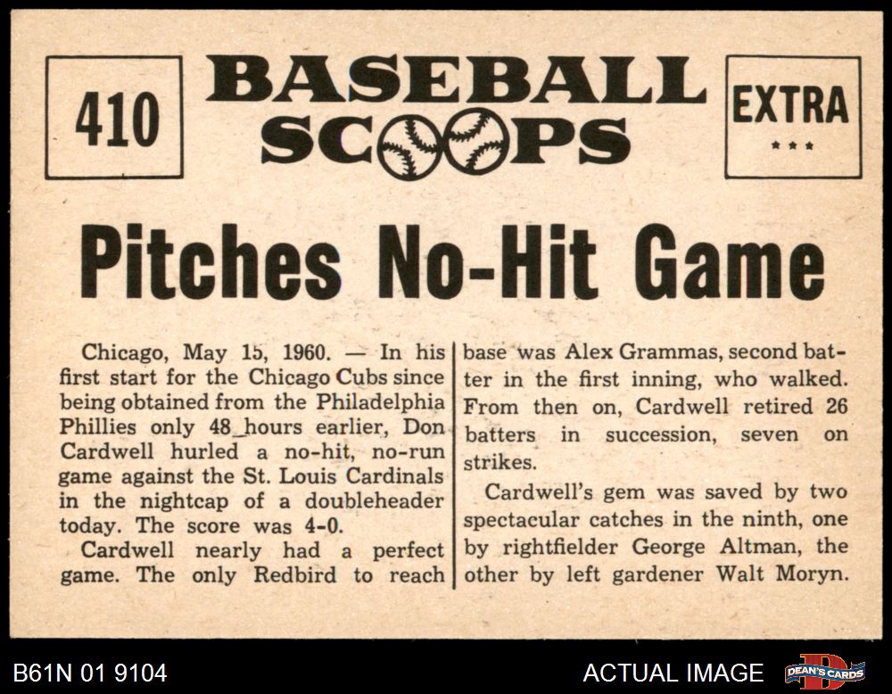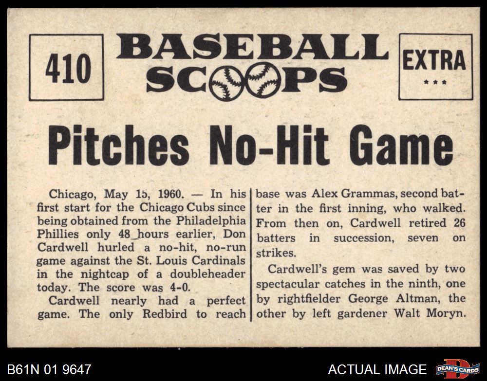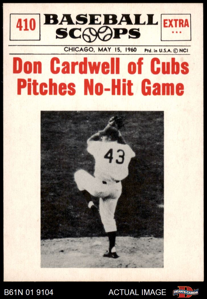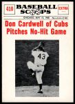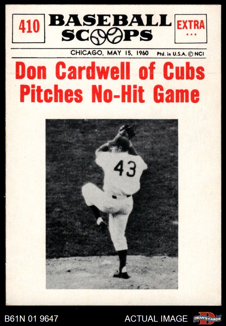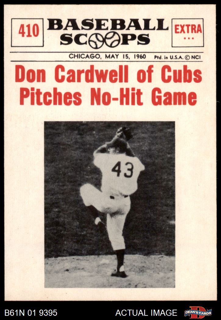 1961 Nu-Card Scoops #410 - Don Cardwell Pitches No-Hit Game 8 - NM/MT