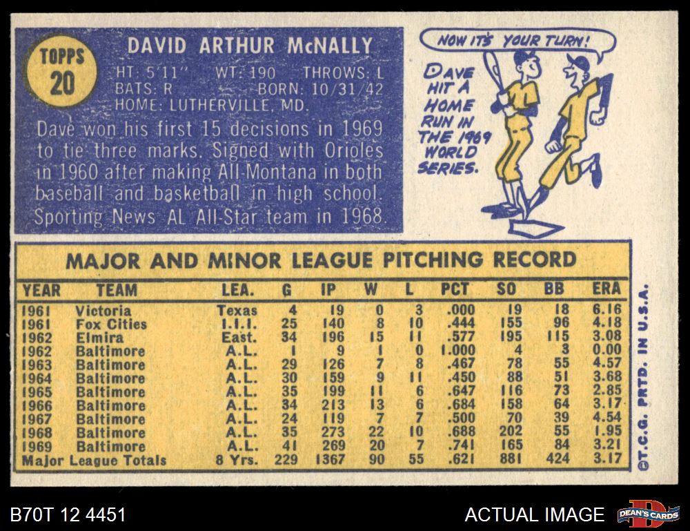 1970 Topps #20 Dave McNally 4 - VG/EX