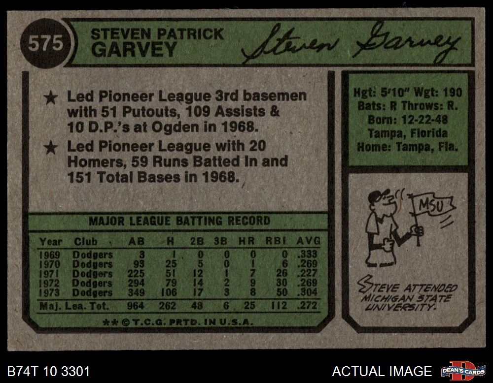 1974 Topps #575 Steve Garvey 7 - NM