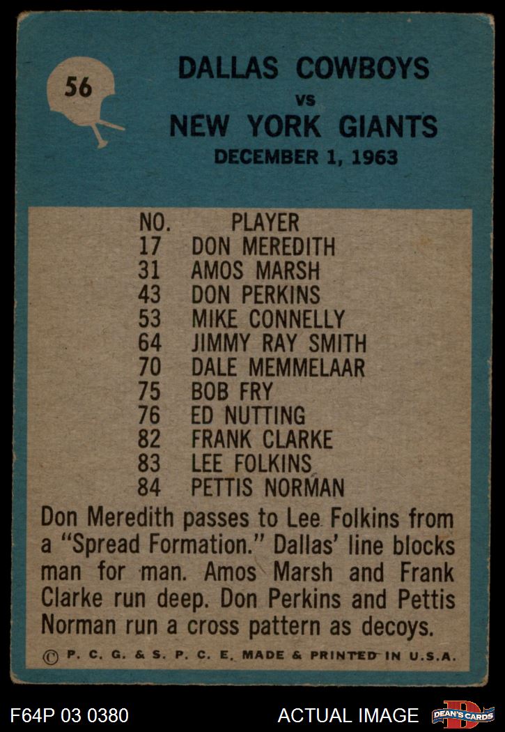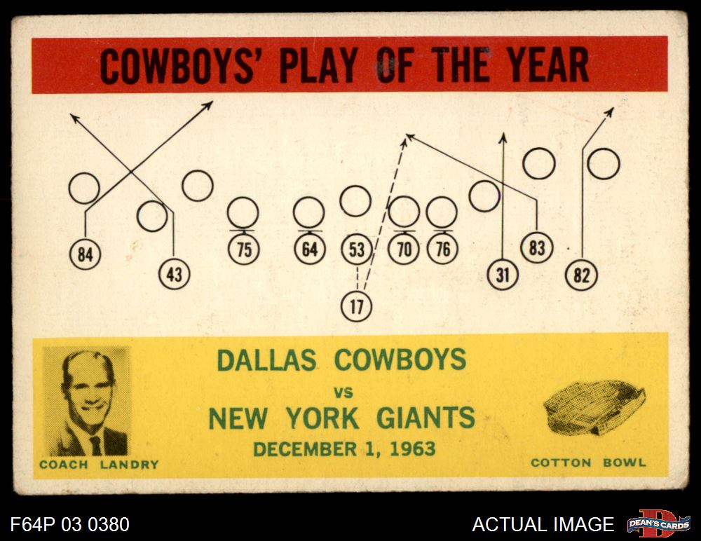 1964 Philadelphia #56 - Tom Landry Dallas Cowboys Play 2 - GOOD