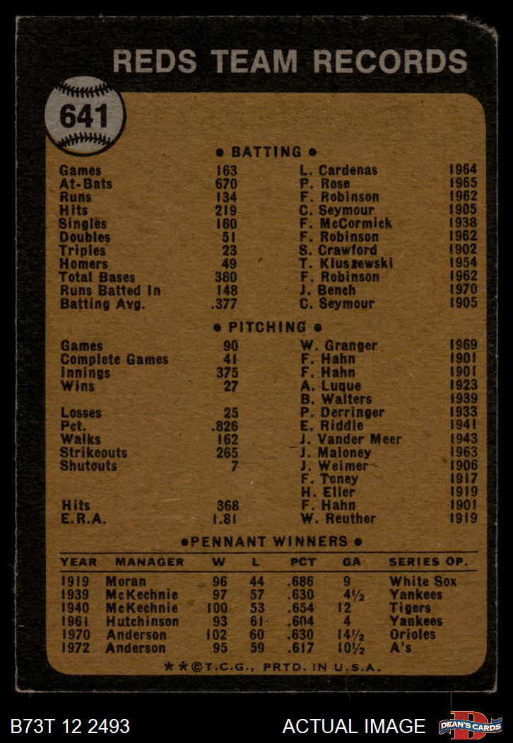 1973 Topps #641 Reds Team AUTHENTIC