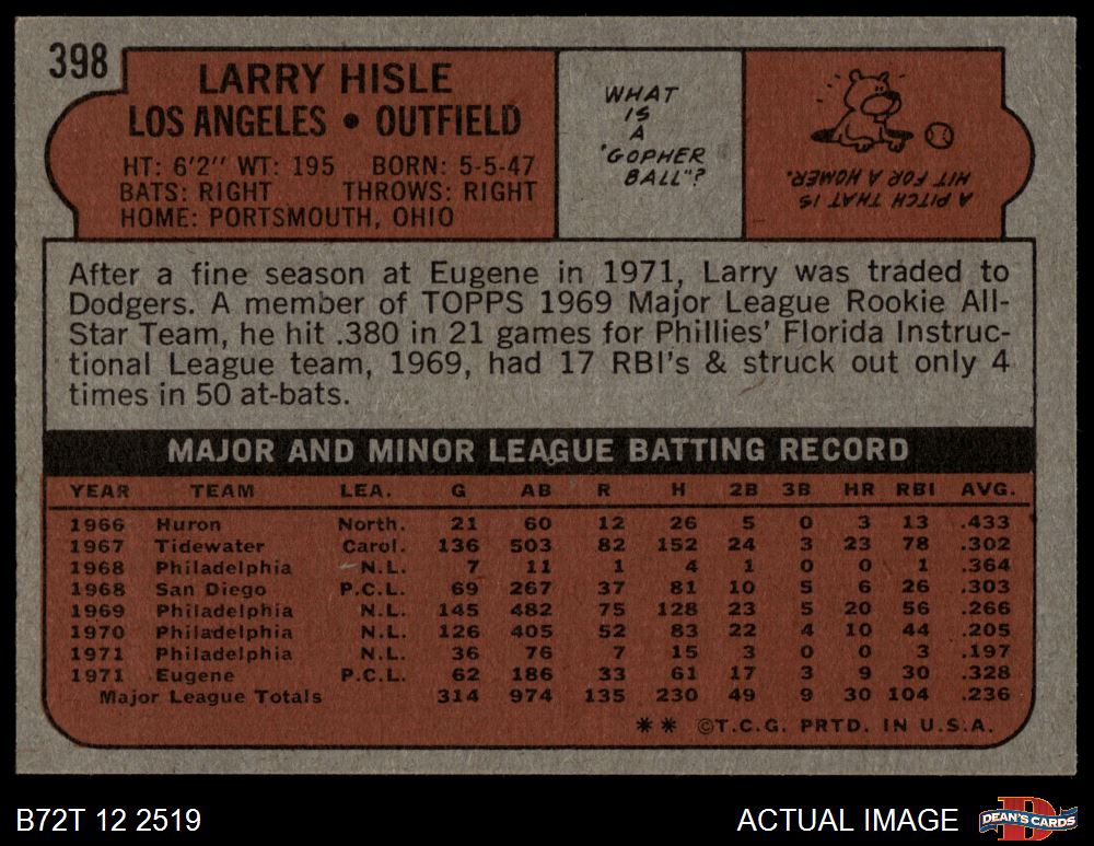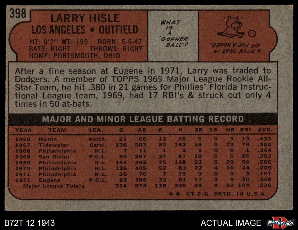 1972 Topps #398 Larry Hisle 4 - VG/EX