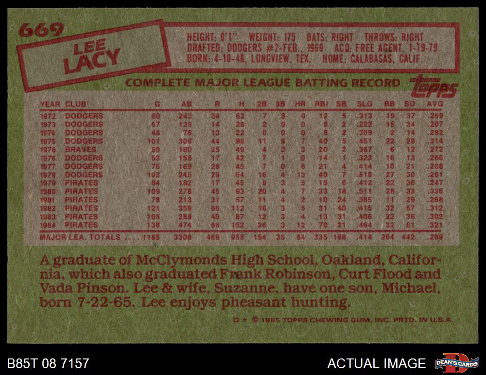 1985 Topps #669 Lee Lacy 7.5 - NM+