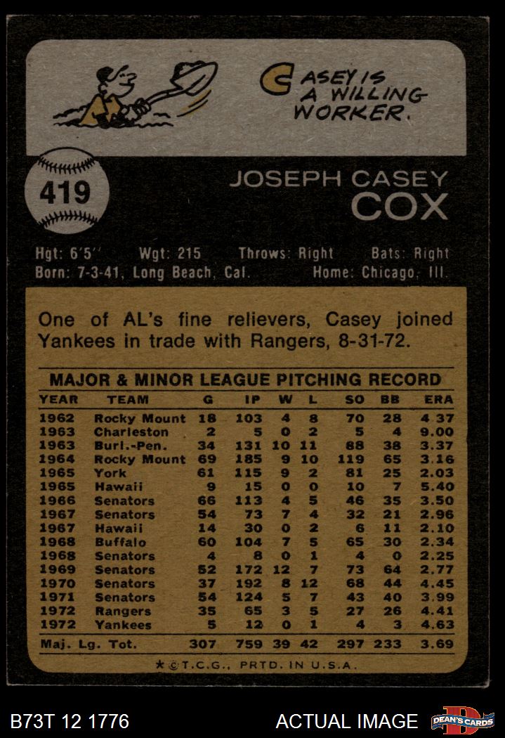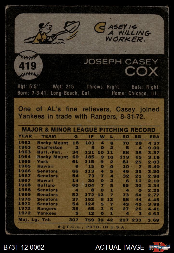 1973 Topps #419 Casey Cox