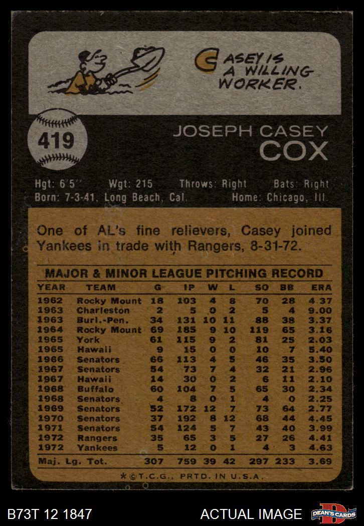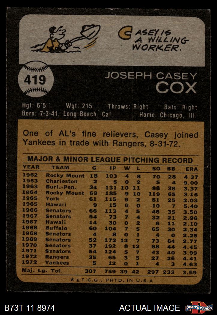 1973 Topps #419 Casey Cox 4 - VG/EX