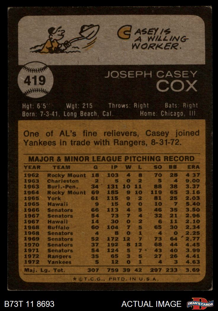 1973 Topps #419 Casey Cox 4.5 - VG/EX+