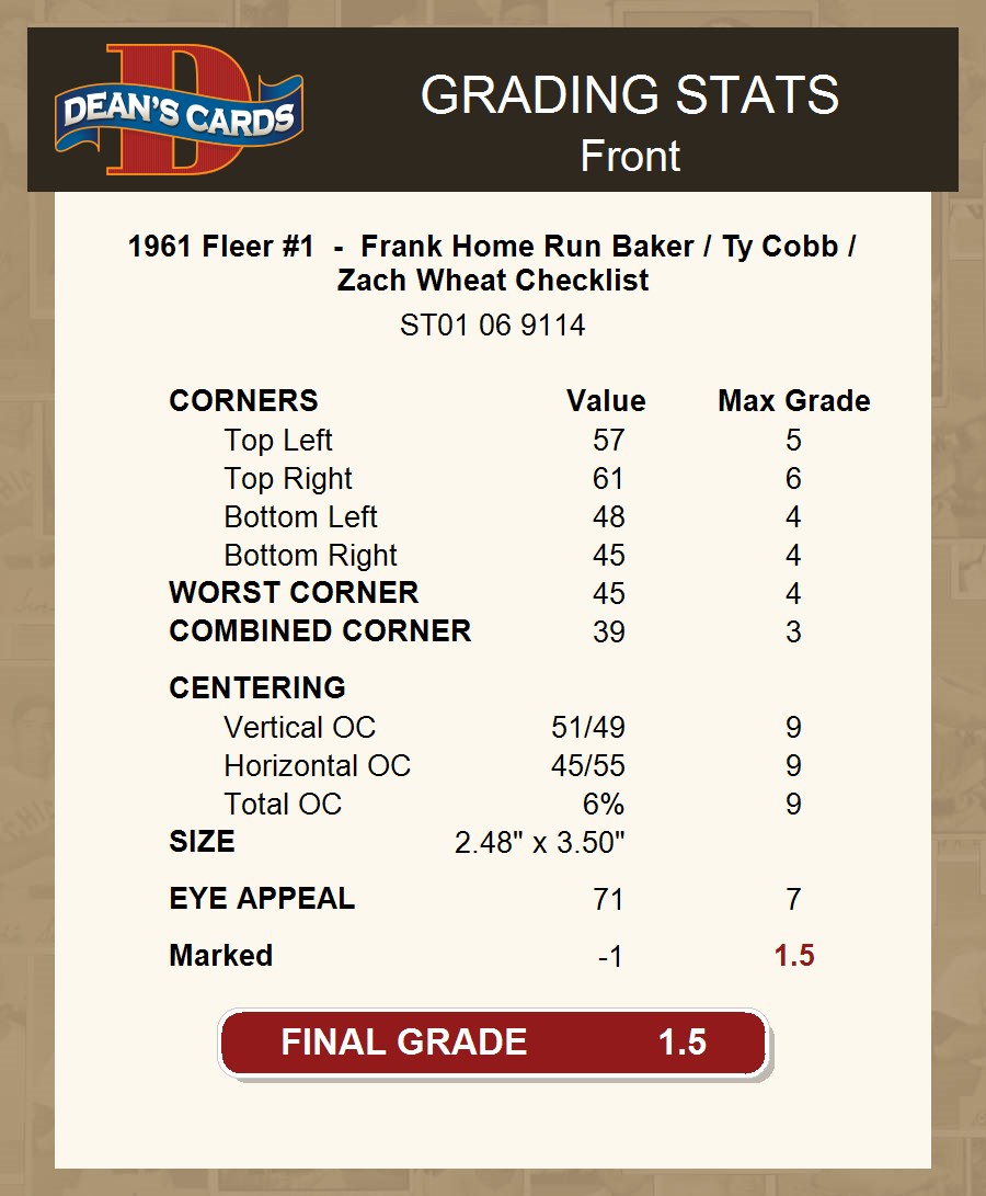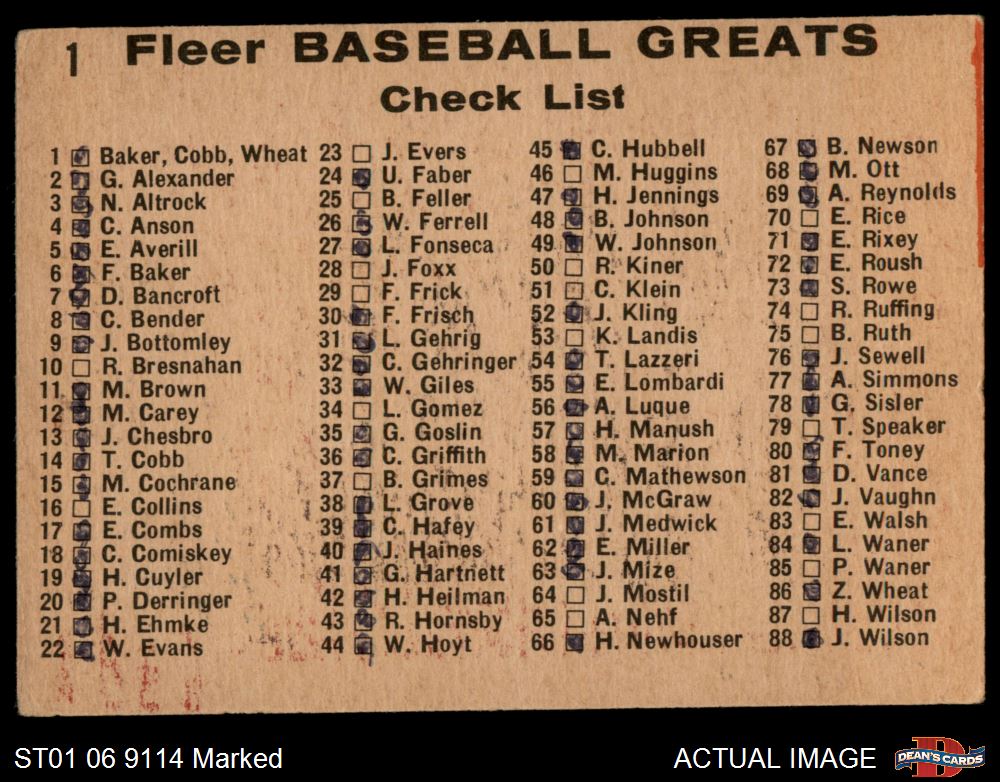 1961 Fleer #1 - Frank Home Run Baker / Ty Cobb / Zach Wheat Checklist 1.5 - FAIR