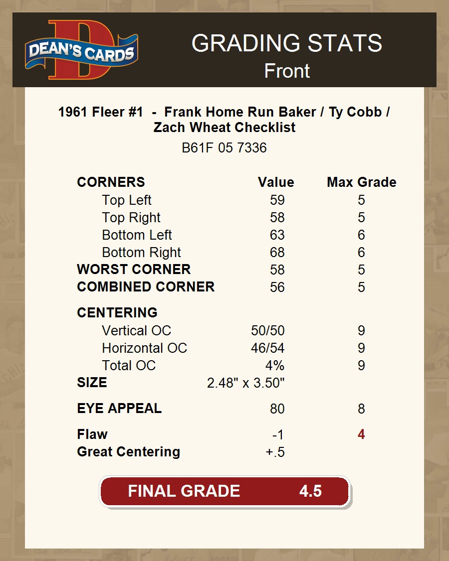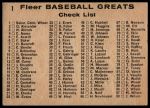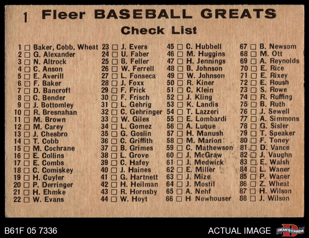 1961 Fleer #1 - Frank Home Run Baker / Ty Cobb / Zach Wheat Checklist 4.5 - VG/EX+