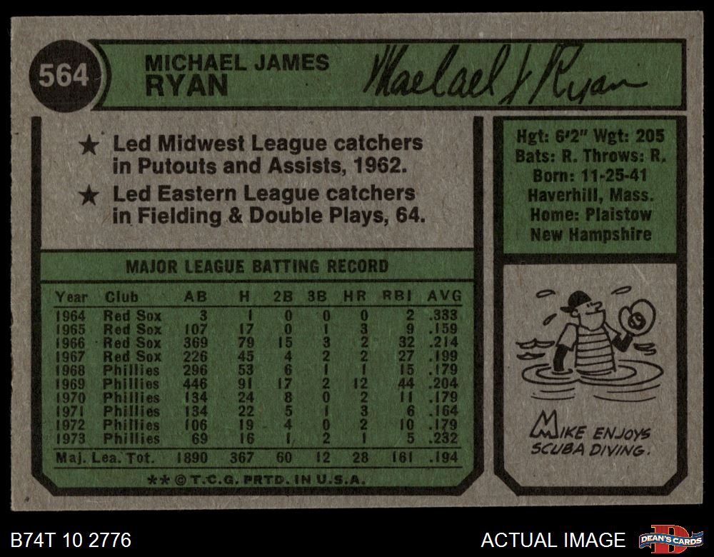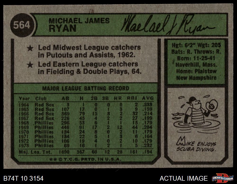 1974 Topps #564 Mike Ryan