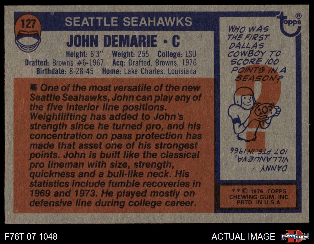 1976 Topps Football Cards (7,282 available)1976 Topps Seahawks (168 available)