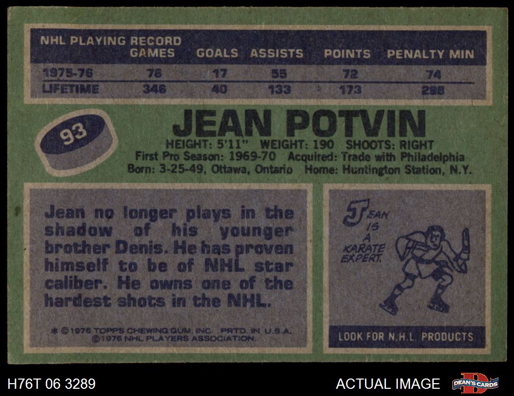 1976 Topps #93 Jean Potvin 4 - VG/EX
