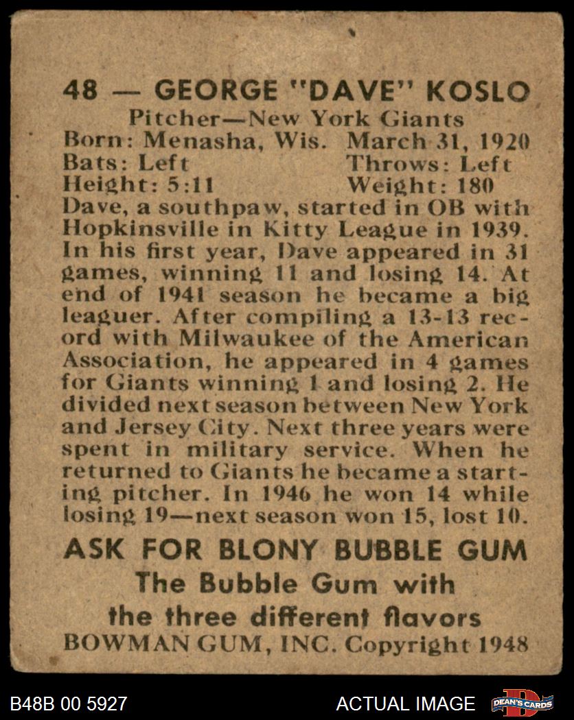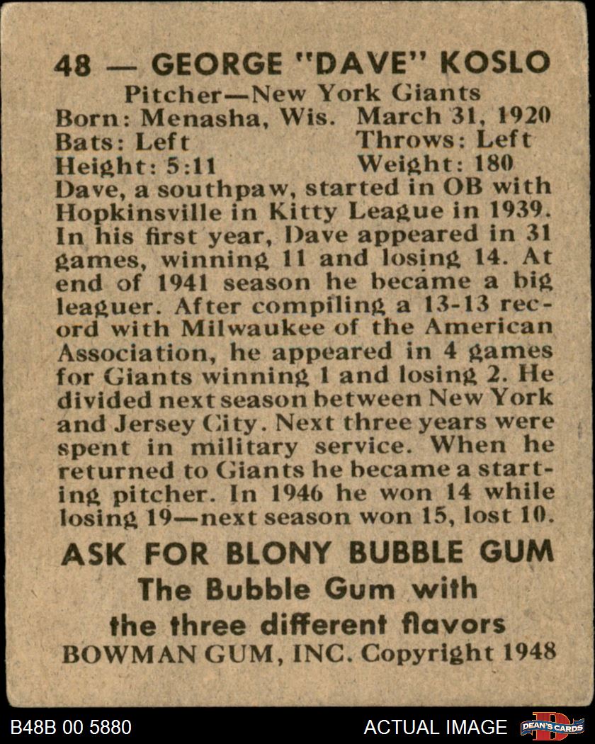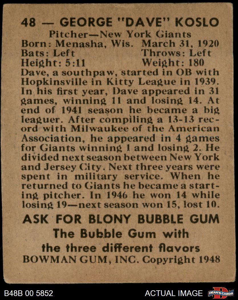 1948 Bowman Baseball Cards (251 available)1948 Bowman Giants (189 available)