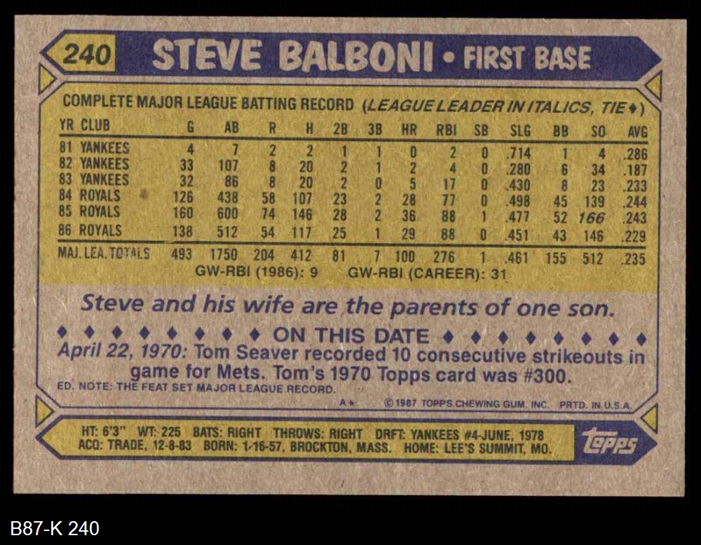 1987 Topps Baseball Cards (5,252 available)1987 Topps Royals (247 available)