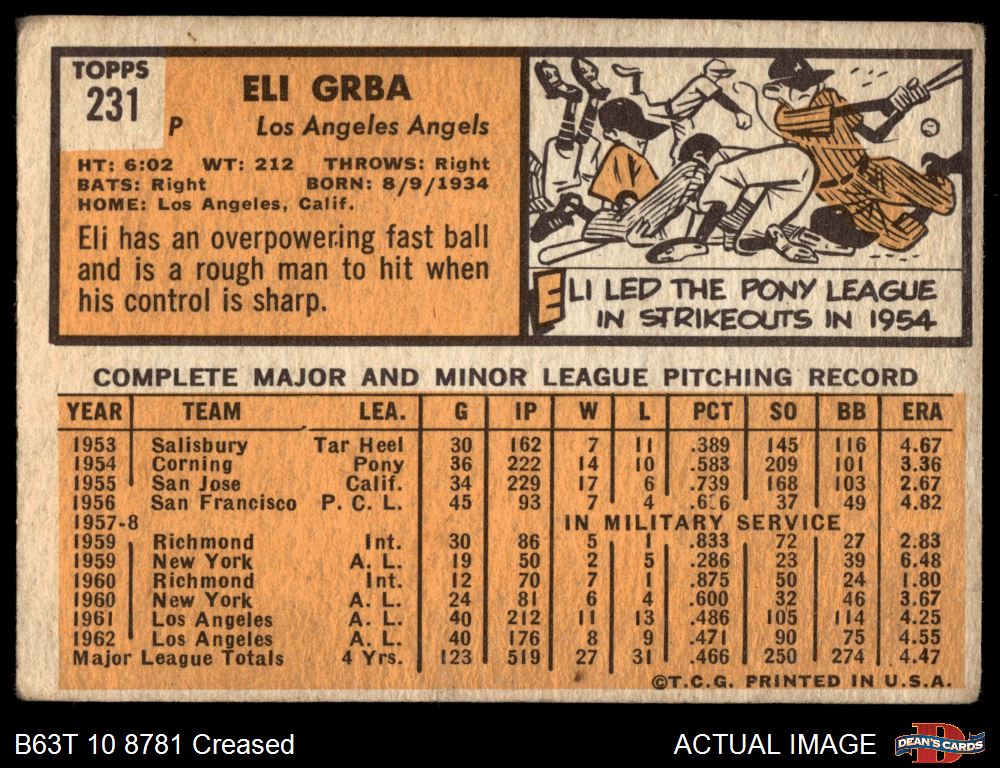 1963 Topps #231 Photo is of Ryne Duren Eli Grba 1 - POOR