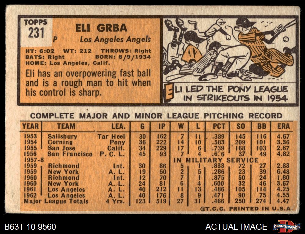 1963 Topps #231 Photo is of Ryne Duren Eli Grba 2 - GOOD