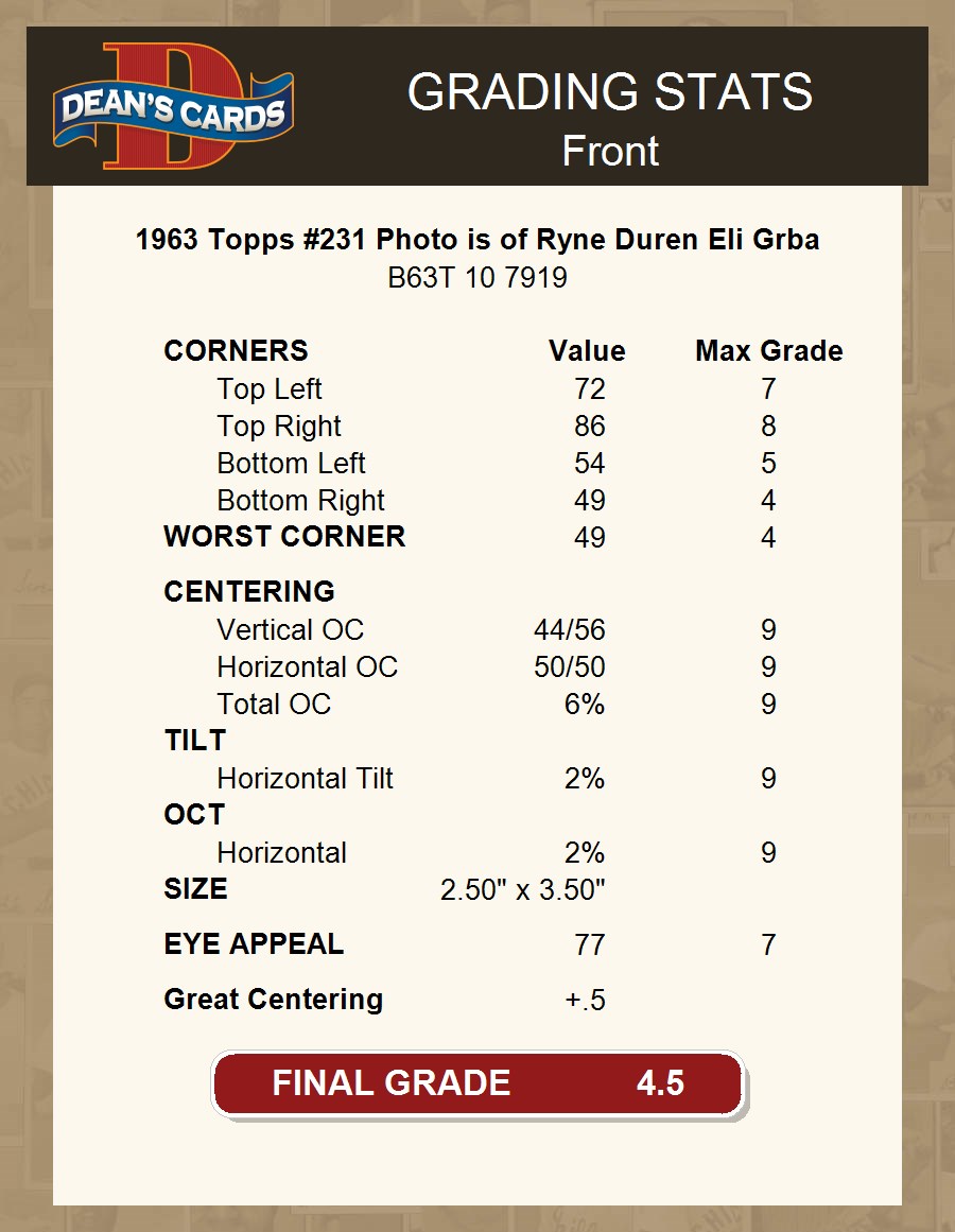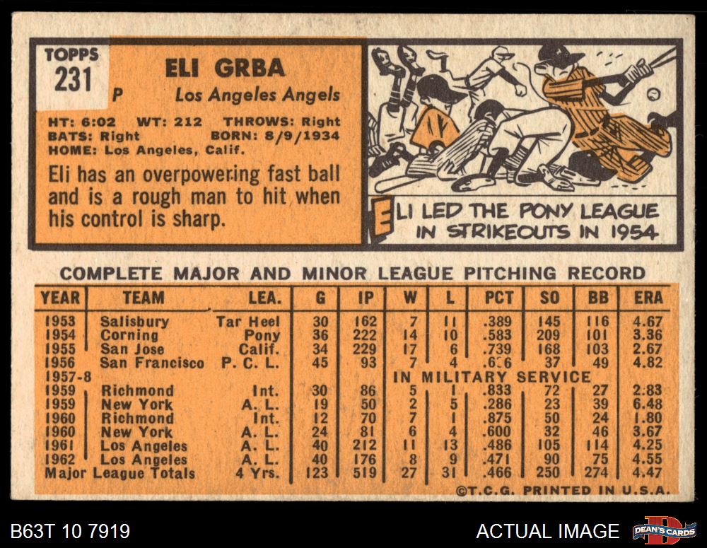 1963 Topps #231 Photo is of Ryne Duren Eli Grba 4.5 - VG/EX+