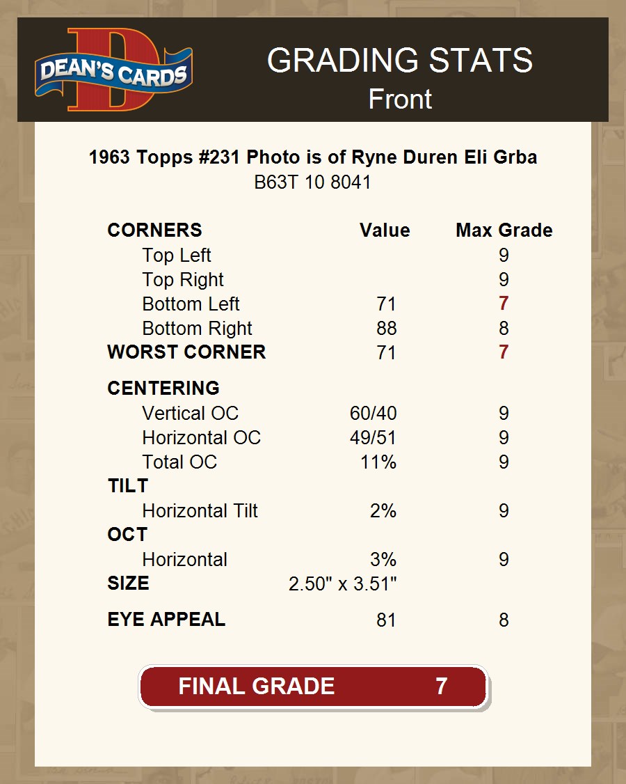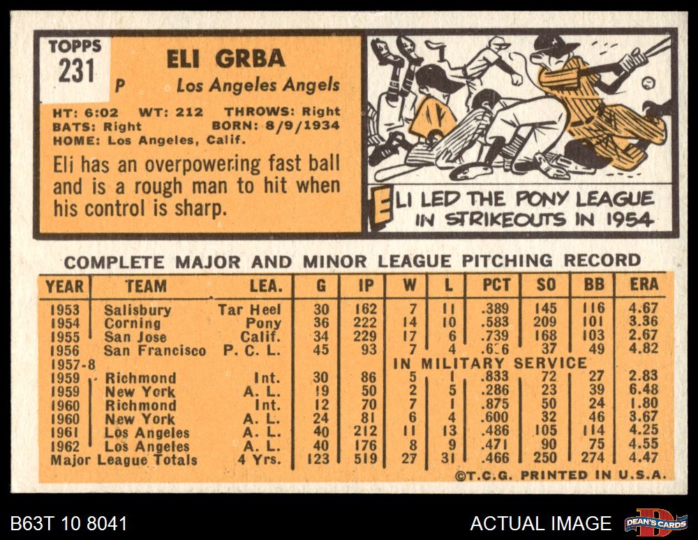 1963 Topps #231 Photo is of Ryne Duren Eli Grba 7 - NM