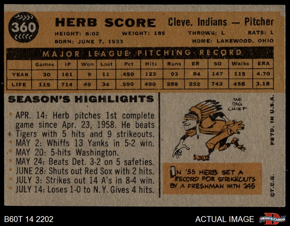 1960 Topps #360 Herb Score