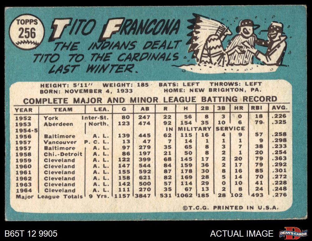 1965 Topps #256 Tito Francona