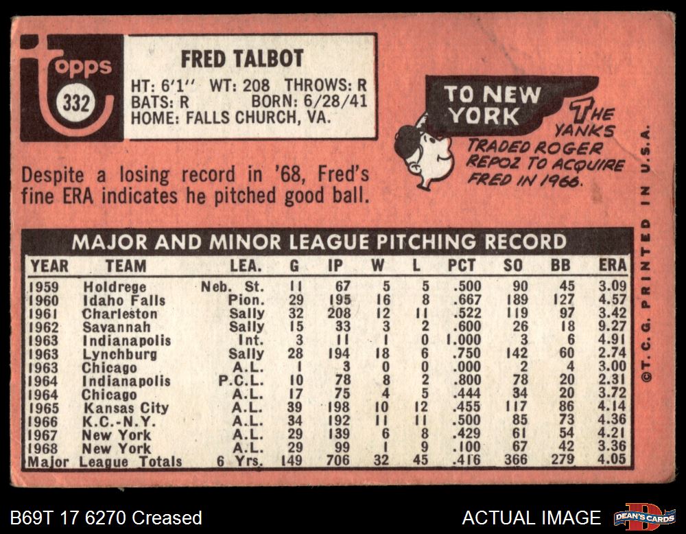 1969 Topps #332 Fred Talbot 2 - GOOD
