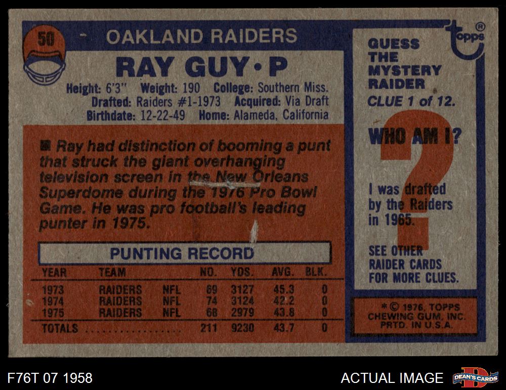 1976 Topps #50 Ray Guy