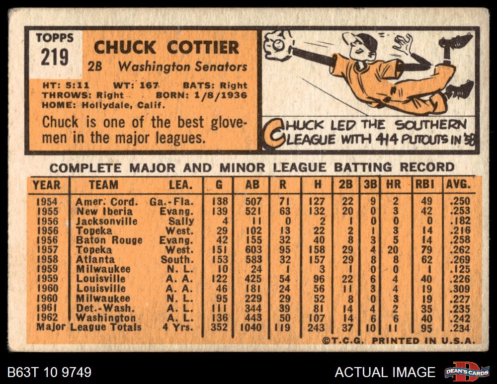 1963 Topps #219 Chuck Cottier 3 - VG