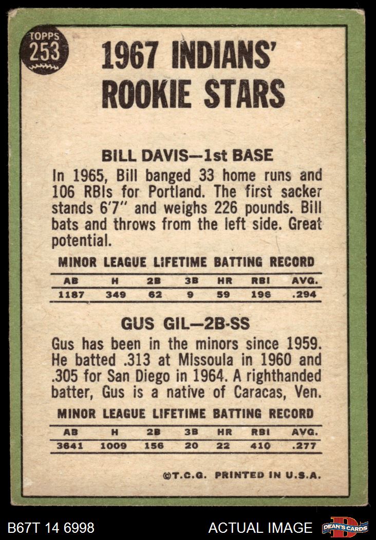 1967 Topps #253 - Bill Davis / Gus Gil Indians Rookies 2 - GOOD