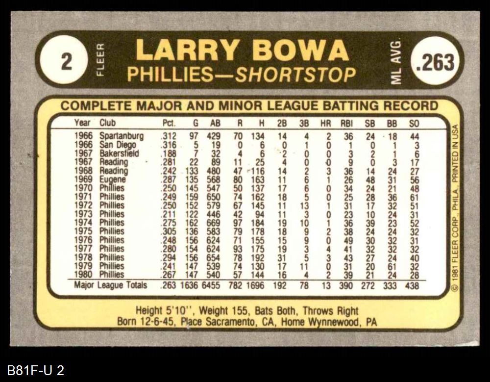 1981 Fleer #2 Larry Bowa