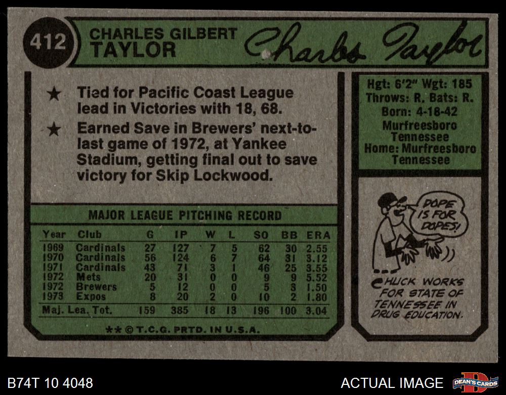 1974 Topps #412 Chuck Taylor 7 - NM