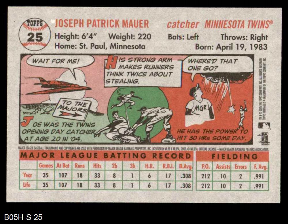 2005 Topps Heritage #25 Joe Mauer 8 - NM/MT