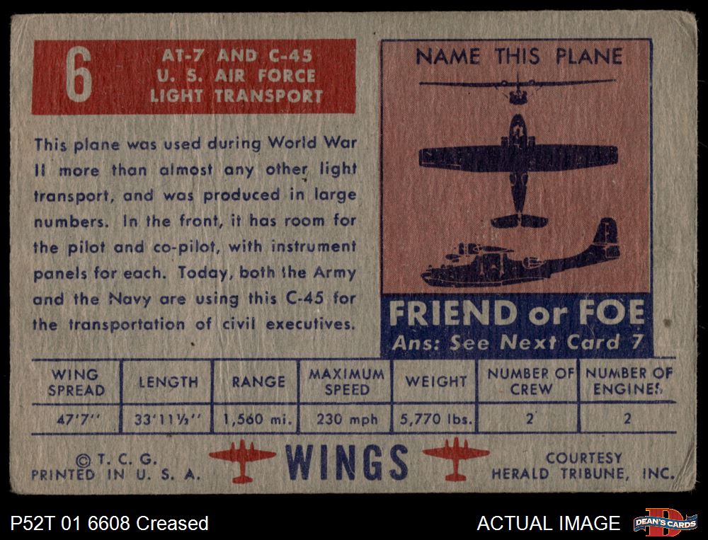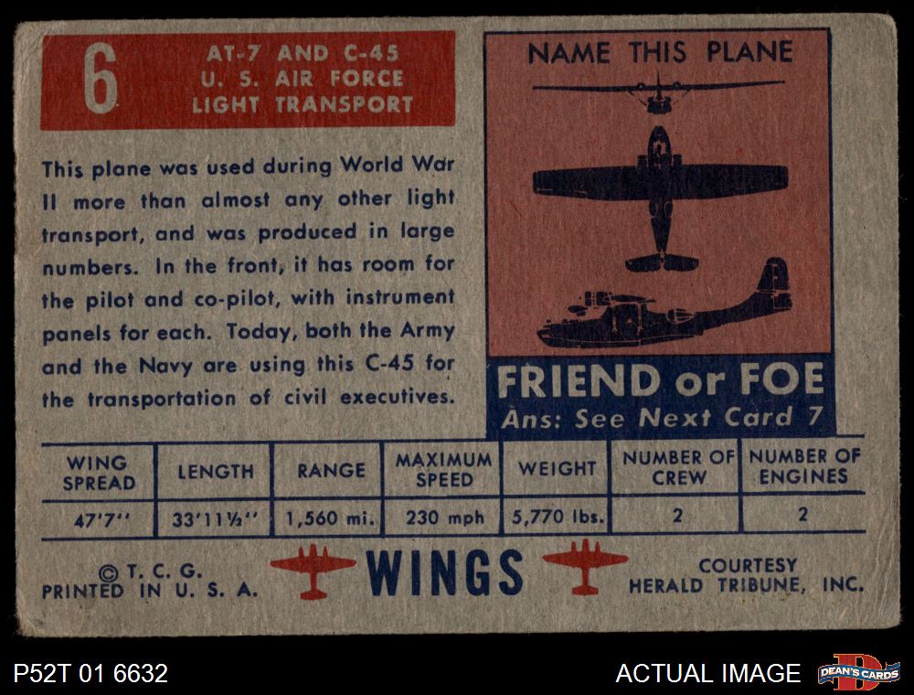 1952 Topps Wings #6 AT-7 Navigator