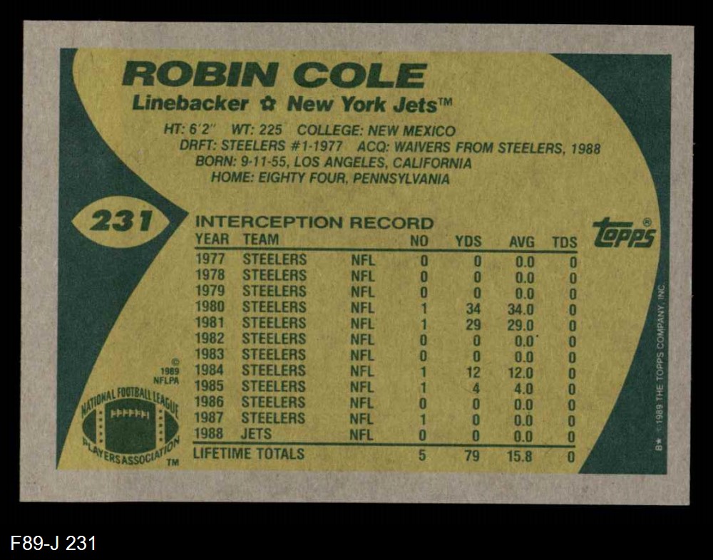 1989 Topps #231 Robin Cole 8 - NM/MT