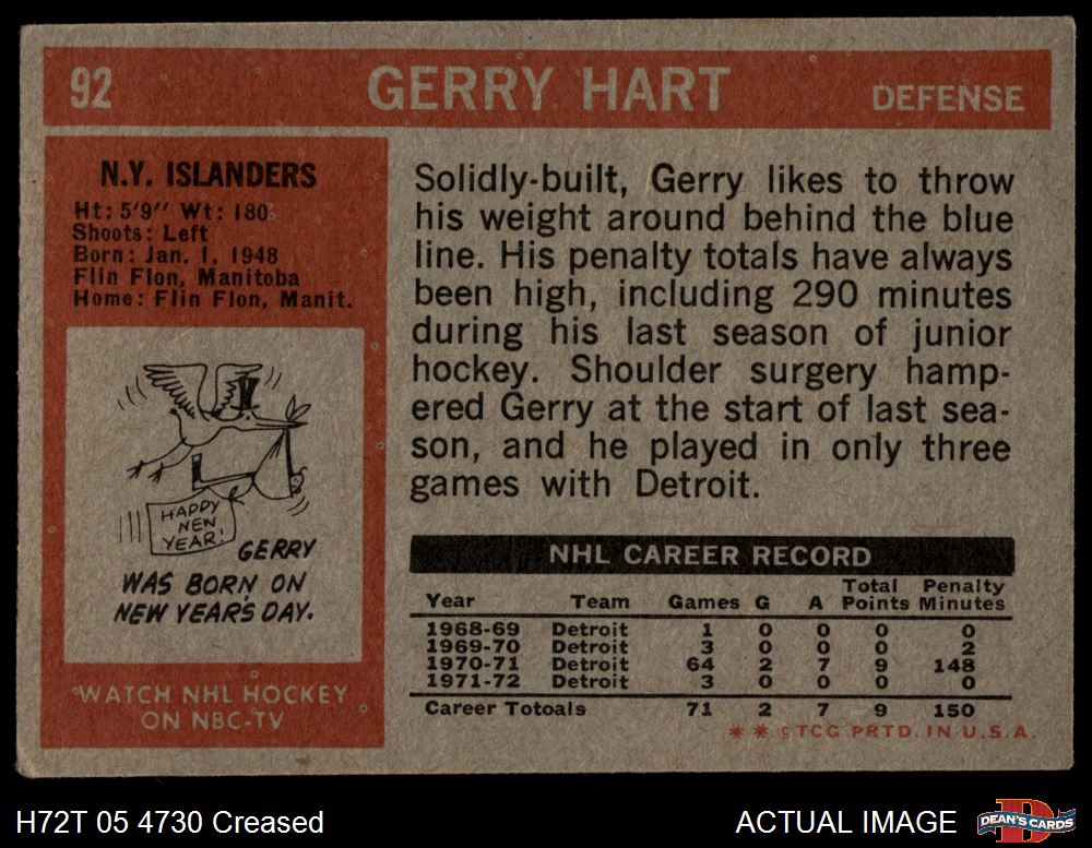 1972 Topps #92 Gerry Hart 2 - GOOD