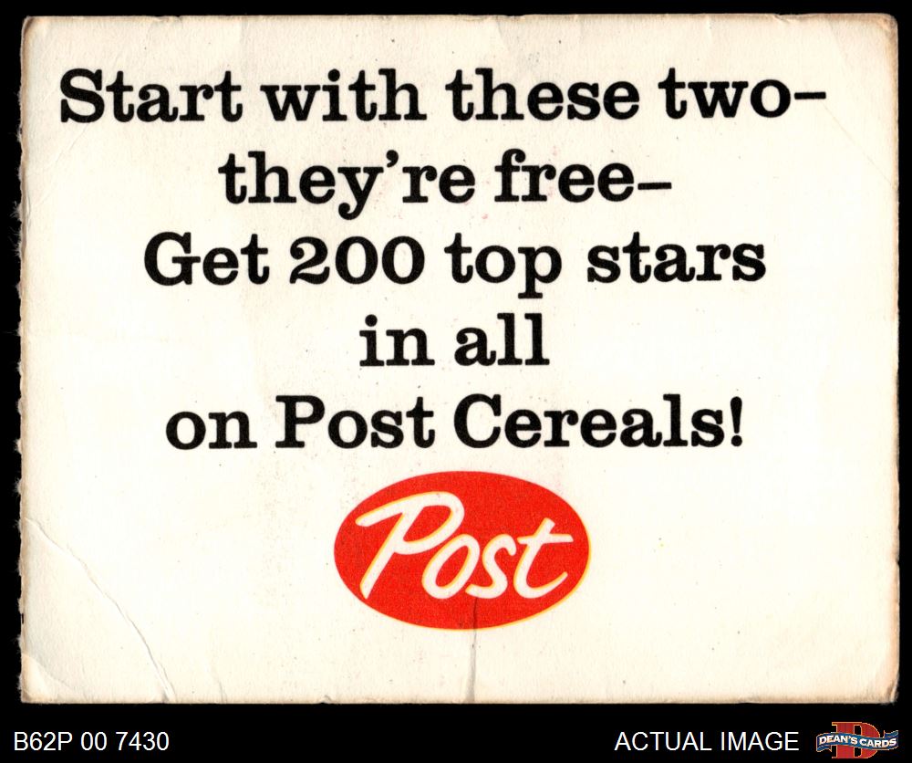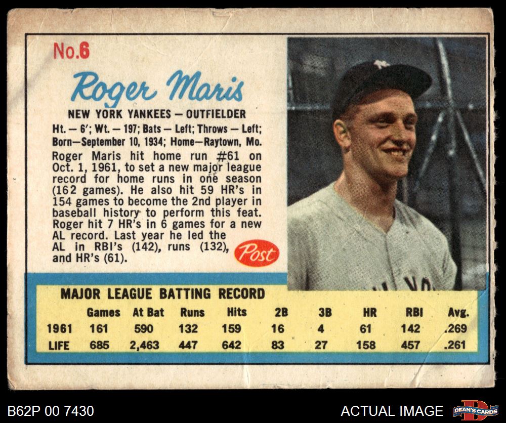 1962 Post Cereal #6 AD Roger Maris 2 - GOOD