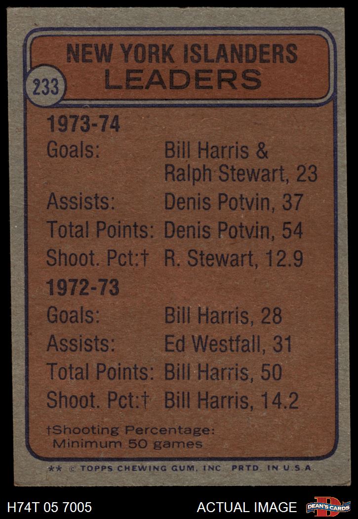 1974 Topps #233 Islanders Leaders