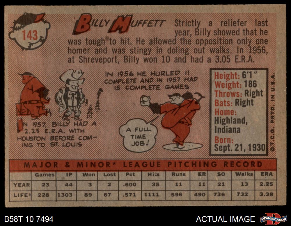 1958 Topps #143 Billy Muffett 6 - EX/MT