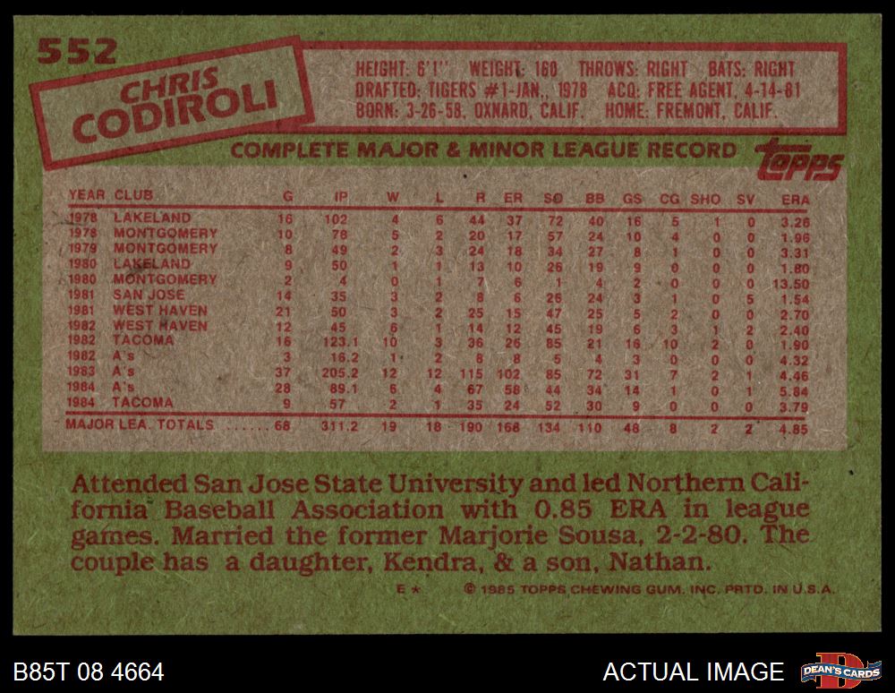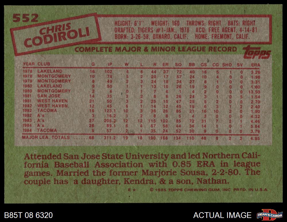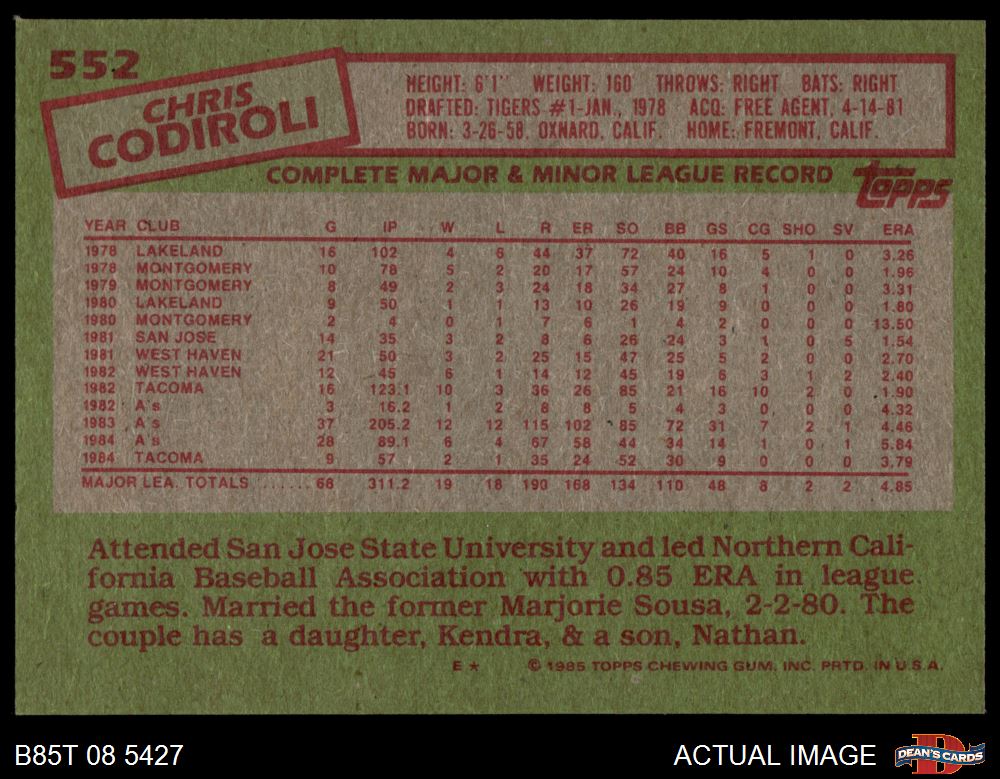 1985 Topps #552 Chris Codiroli 8 - NM/MT
