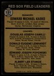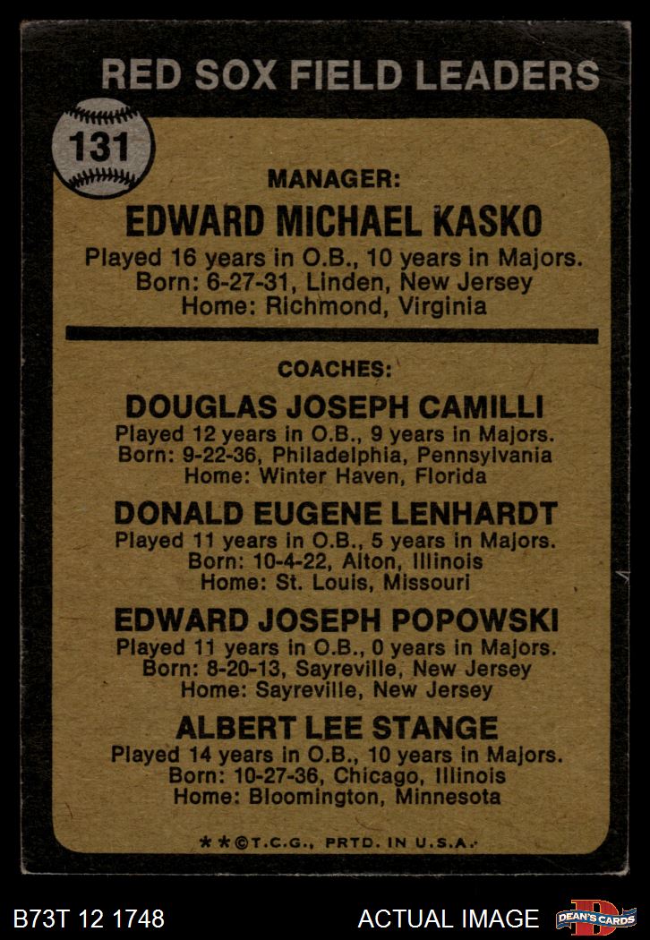 1973 Topps #131 BRN - Eddie Kasko / Doug Camilli / Don Lenhardt / Eddie Popowski / Lee Stange Red Sox Leaders 2.5 - GD+