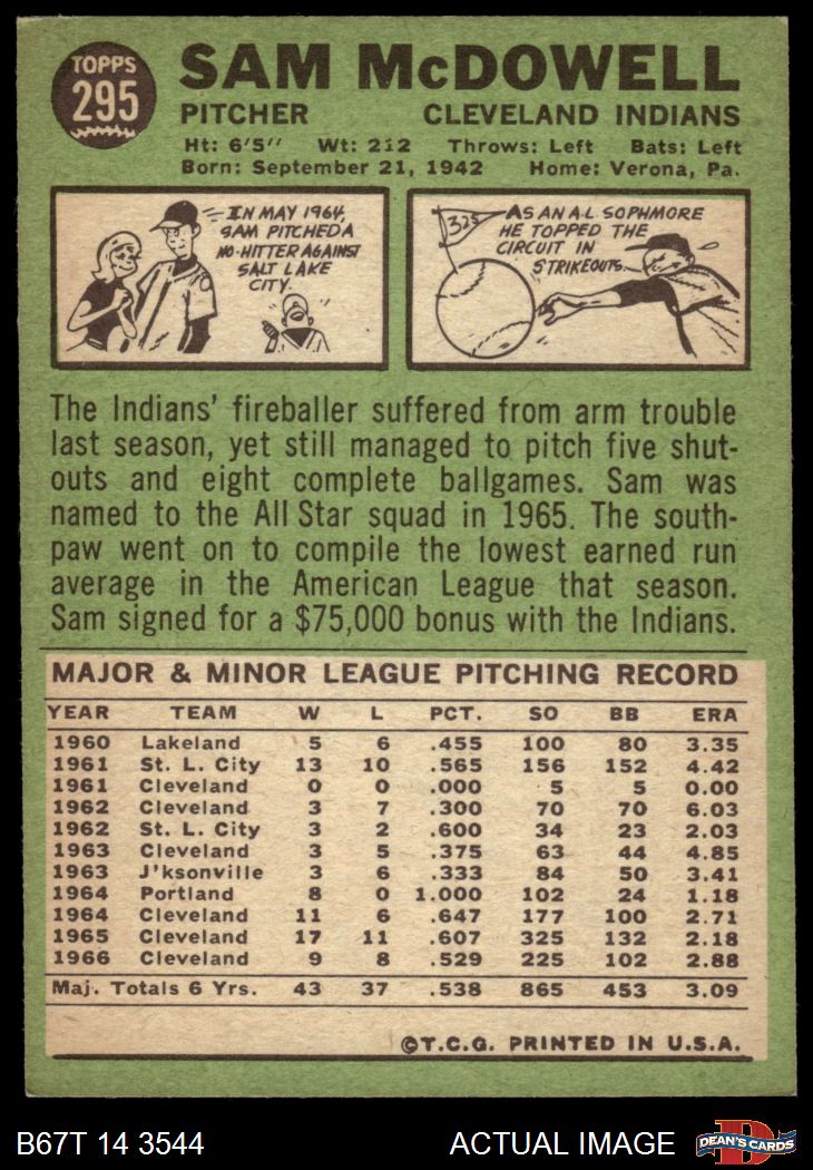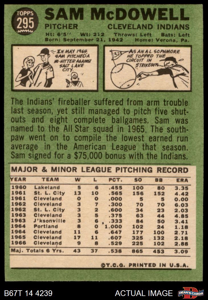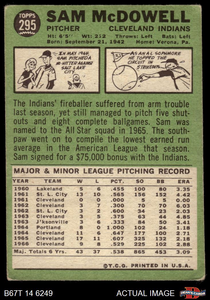 1967 Topps #295 Sam McDowell