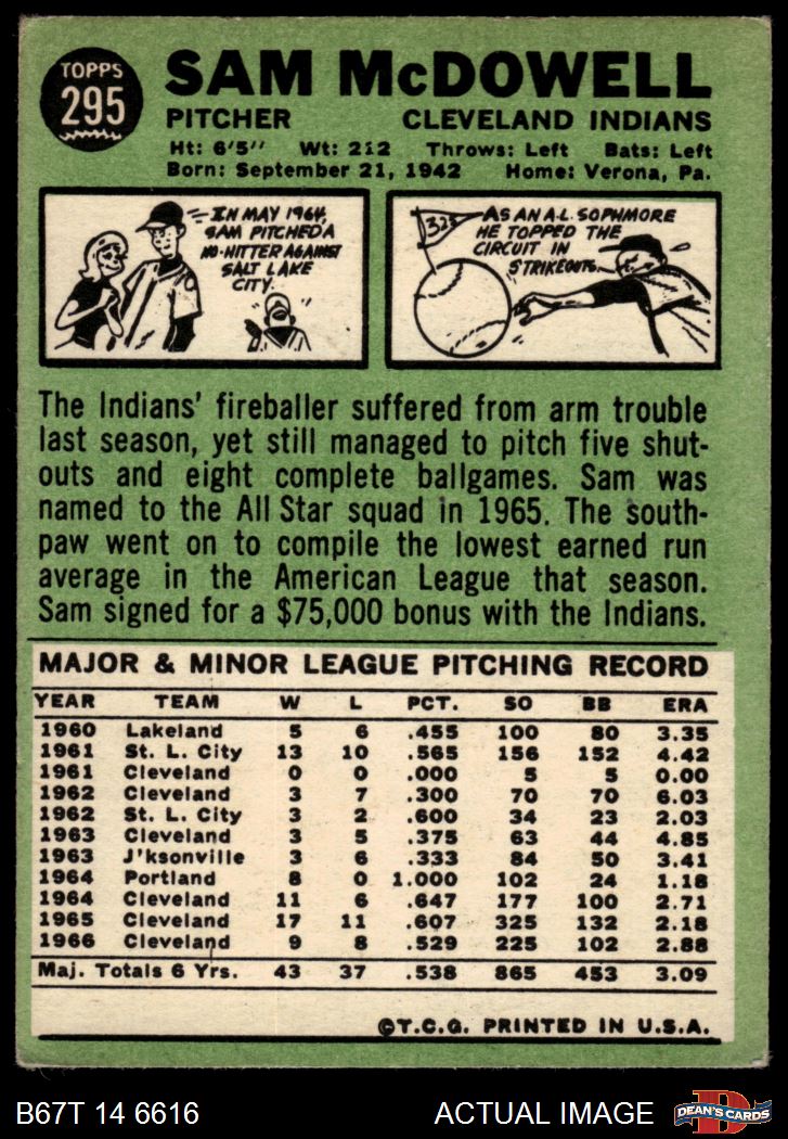 1967 Topps #295 Sam McDowell 3 - VG