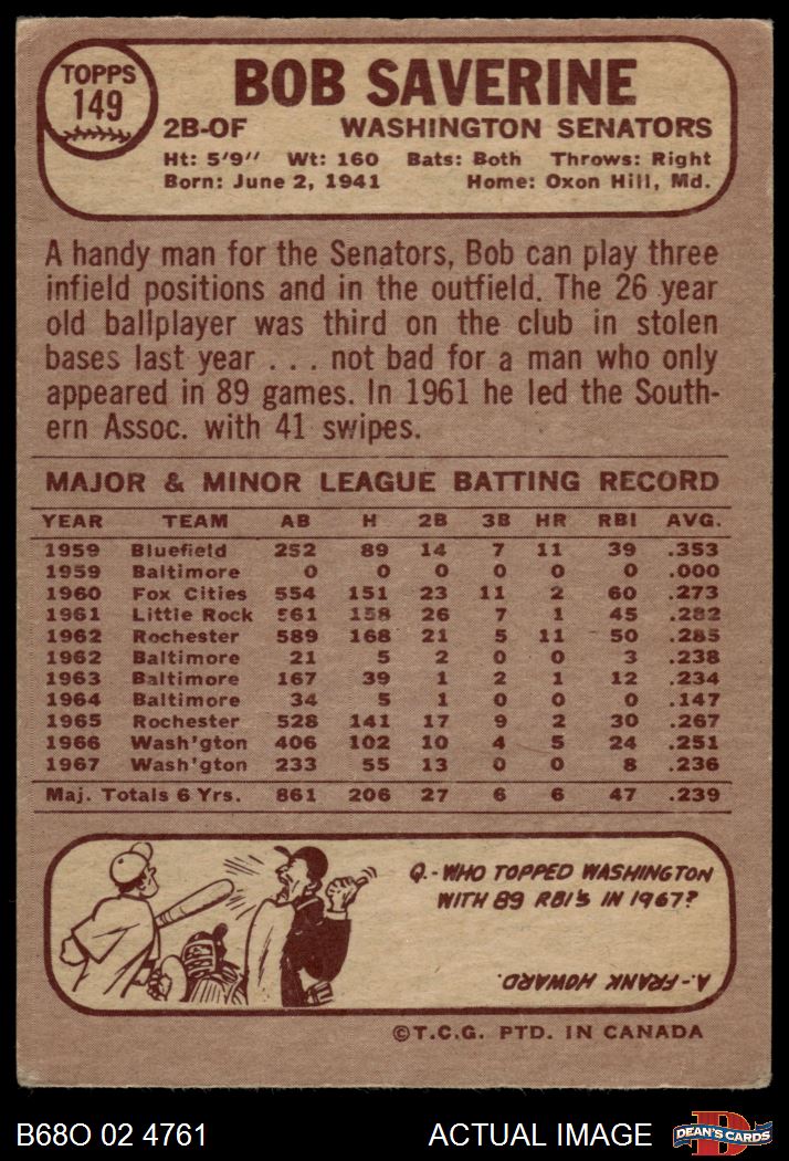 1968 O-Pee-Chee #149 Bob Saverine 4 - VG/EX