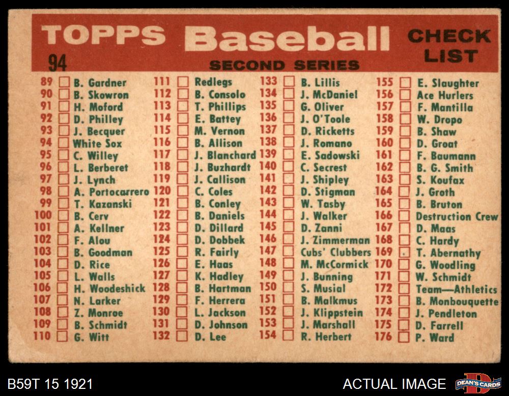 1959 Topps #94 White Sox Team Checklist 3 - VG